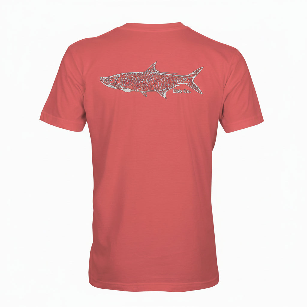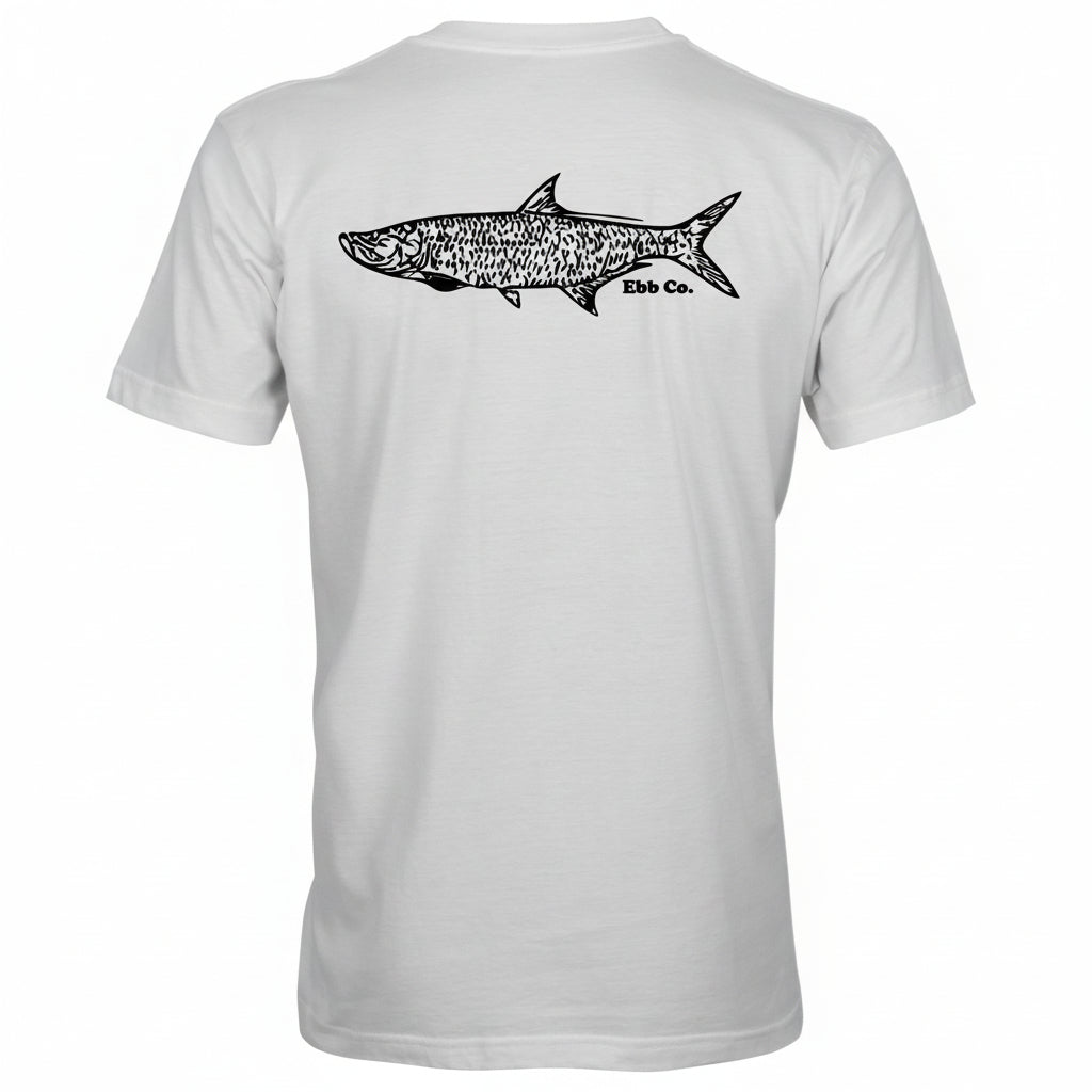 Our Ebb Co. Tarpon Tee features a bold tarpon graphic and clean coastal style that speaks to anyone who’s felt their heart race at the sight of silver scales in shallow water. Made for comfort on and off the water, this shirt is perfect for post-session beers, dock talk, or dreaming of the next big eat.