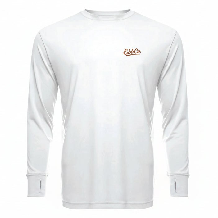 This one’s built for those full-send days on the water. This Performance Crew brings certified UPF 50 sun protection, a lightweight breathable feel, and a minimalist redfish tail on the back. Spot on.